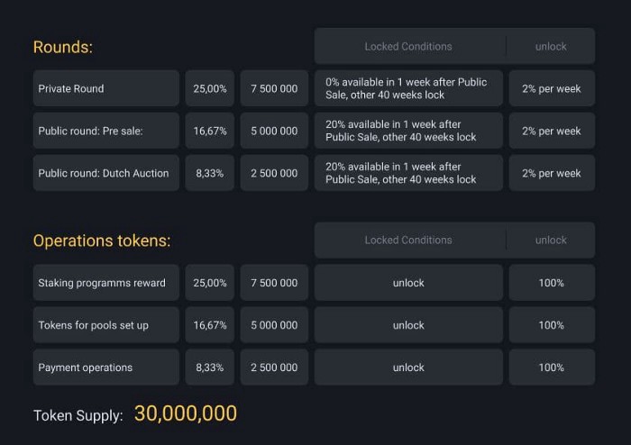 GENERAL SALESIf the pre-sale target is below expectations, there is an option to offer internal staking & DEFI simultaneously