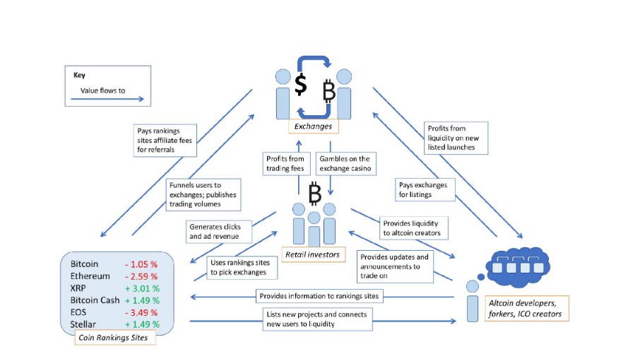 The nature of the Crypto currency industry means that retail investors must rely on exchanges, developers and coin ranking sites to make decisions. This relationship looks like a relationship between retail investors and players in the Crypto industry.